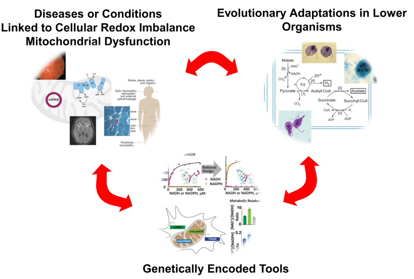 Many bacteria and eukaryotes have reconfigured or are completely devoid of a conventional electron transport chain (ETC), such as that found in mammalian mitochondria. We are interested in systematically exploring the evolutionary adaptations which allow organisms to tolerate missing components of the ETC. Such evolutionary innovations can be very attractive for the following reasons: 1) they can inspire novel strategies of “bypassing” a corrupted ETC in various models of mitochondrial disorders; 2) they can provide a basis for the development of tools to dissect cellular redox metabolism. For example, a number of bacteria and members of the Excavata supergroup of unicellular eukaryotes can tolerate fairly aerobic environments despite lacking a conventional ETC, which is ordinarily thought to play a pivotal role in detoxifying environmental oxygen. These organisms rely on enzymes which catalyze a H2O-forming NADH oxidase reaction to recycle NAD+ using oxygen as a final electron acceptor. We recently used one of these enzymes, a H2O-forming NADH oxidase from the bacterium Lactobacillus brevis (LbNOX), to ameliorate the proliferative defect caused by impaired ETC in human cells (Titov, Cracan et al. Science; 2016). If the organ pathologies associated with mitochondrial disease or other conditions stem from redox imbalance, then expression of LbNOX or similar proteins holds promise as a “protein prosthesis” therapy.
